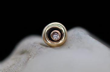 All stones are set by hand without adhesives, and all pieces are solid 14k gold or CP-Nb niobium. All ends currently are threadless, however we are working towards being able to offer threaded pieces as well in the near future. You can find Eclipse rings, charms, chains and ends in store proudly displayed and on our webstore, with new one-of pieces being added frequently. At the moment we are taking requests for customs at Reece's discretion, knowing that this project has more growing to do. Please get in contact through social media or text the shop number for questions regarding customs.